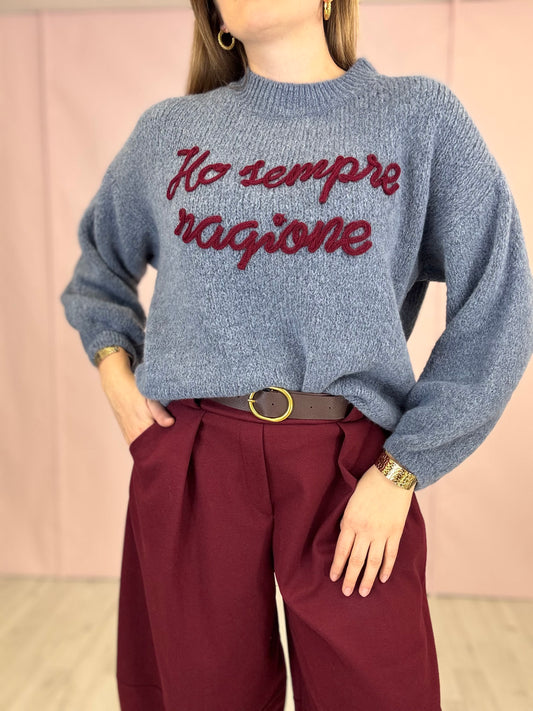 Pull “Ho sempre ragione” Azzurro polvere
