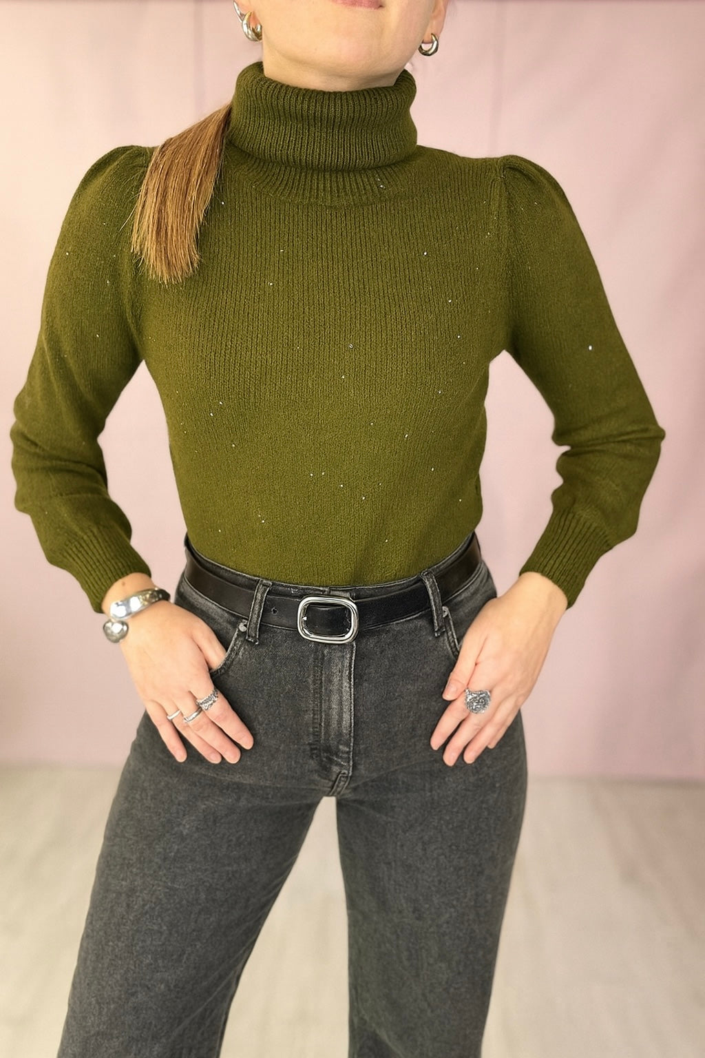 Maglioncino dolcevita illuminato da paillettes finissime argentate