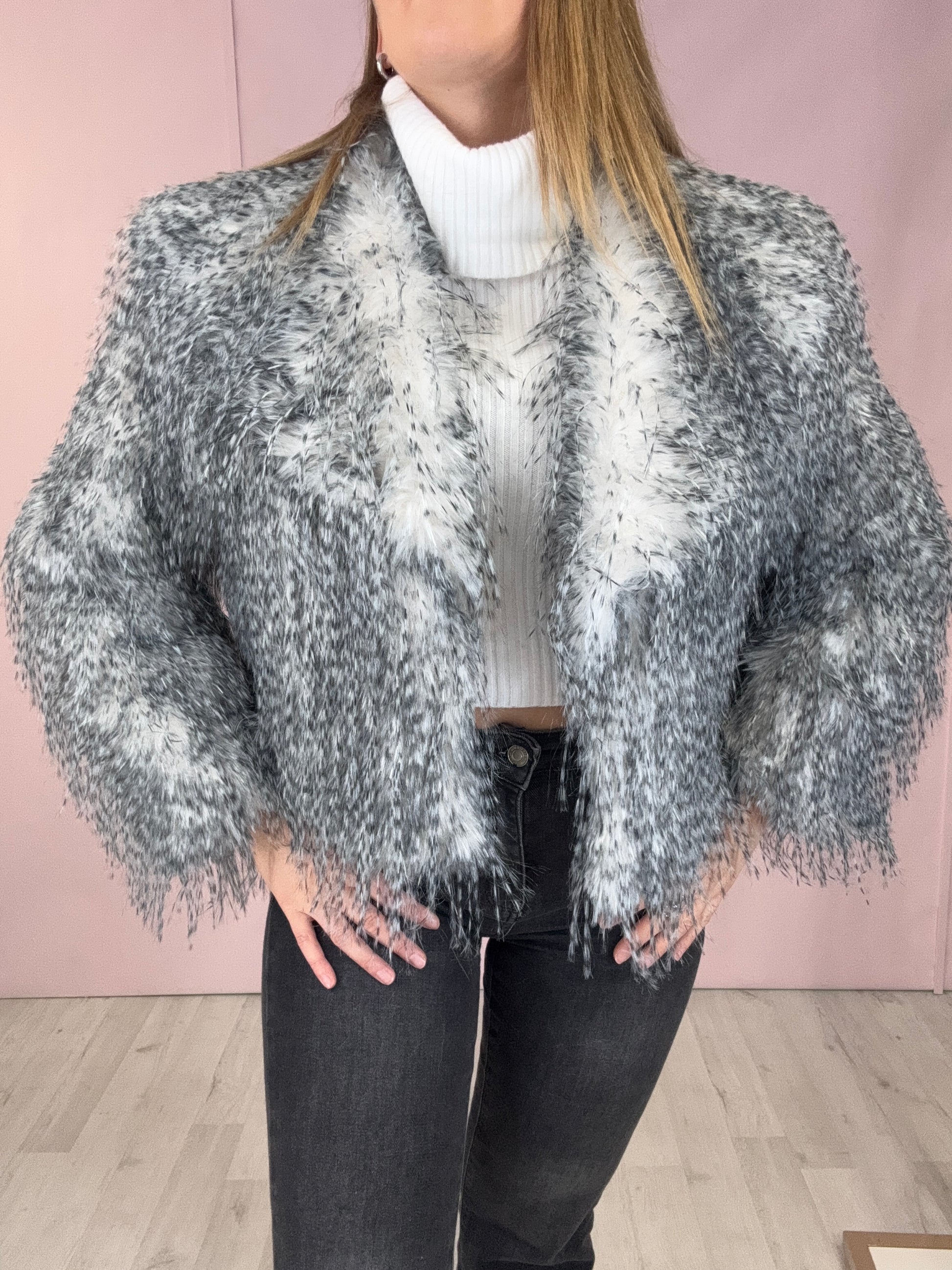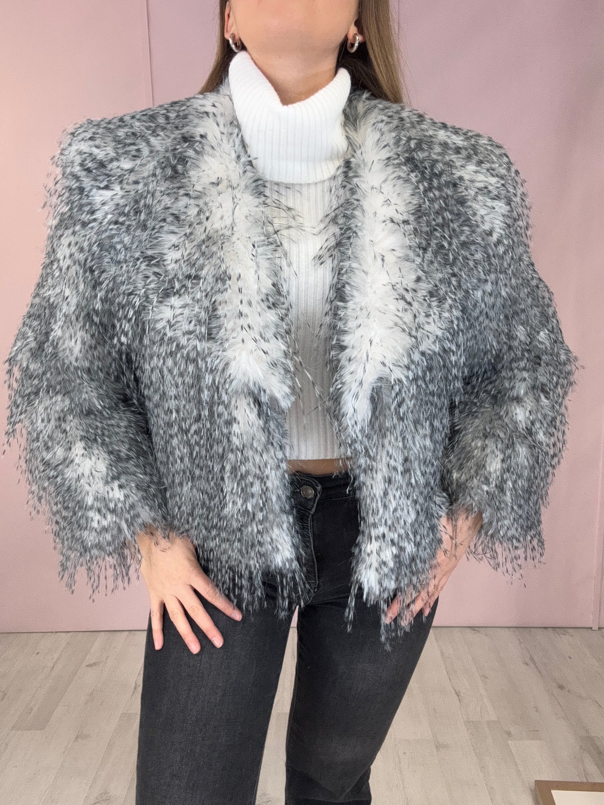 Eco-pelliccia Athena bianca e grigia